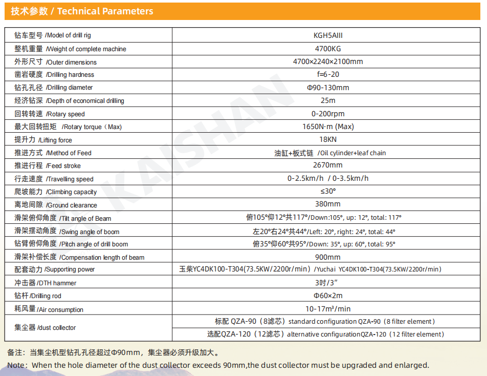 The drill rig is characterized by excellent integrity, high automation, efficient drilling, environment-friendliness, energy conservation, simple operation, flexibility and travelling safety,etc.